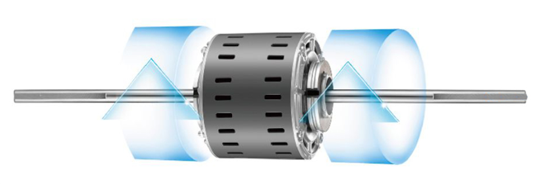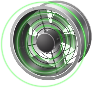 轴向进风,通过旋转形成