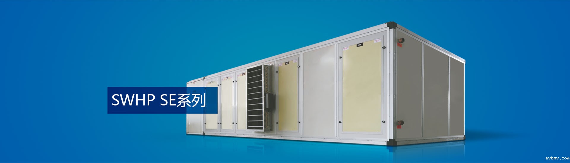 除湿机SWHP SE系列内置有送风机和排风机。该恒温泳池空气质量控制系统的排风机置于蒸发盘管上游的回风管内,排风量约占循环风量的30%左右,在蒸发盘管和冷凝盘管之间的风板装有新风口,设备可设定成排风比新风多10%左右,以使室内泳池空间产生负压。